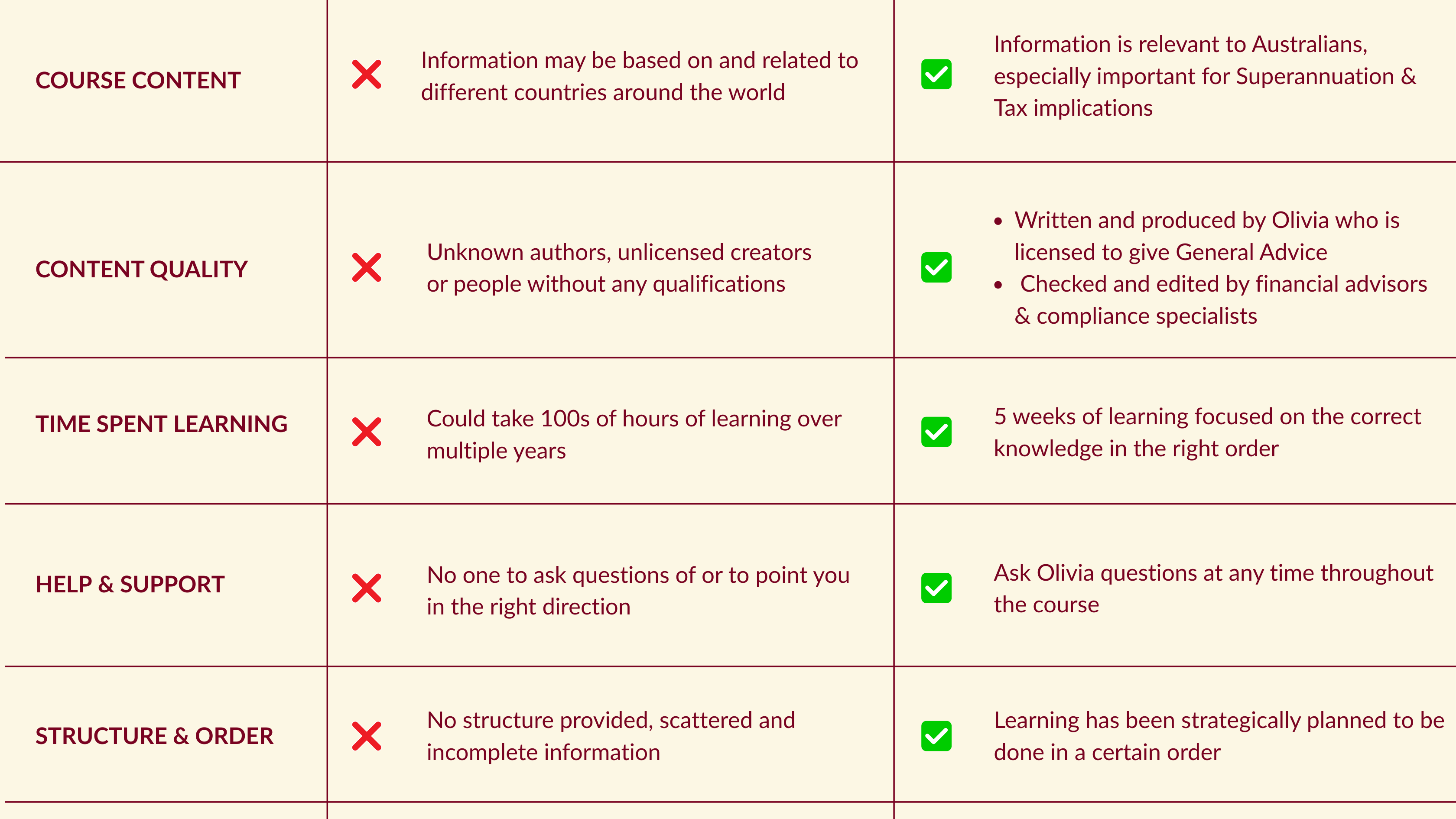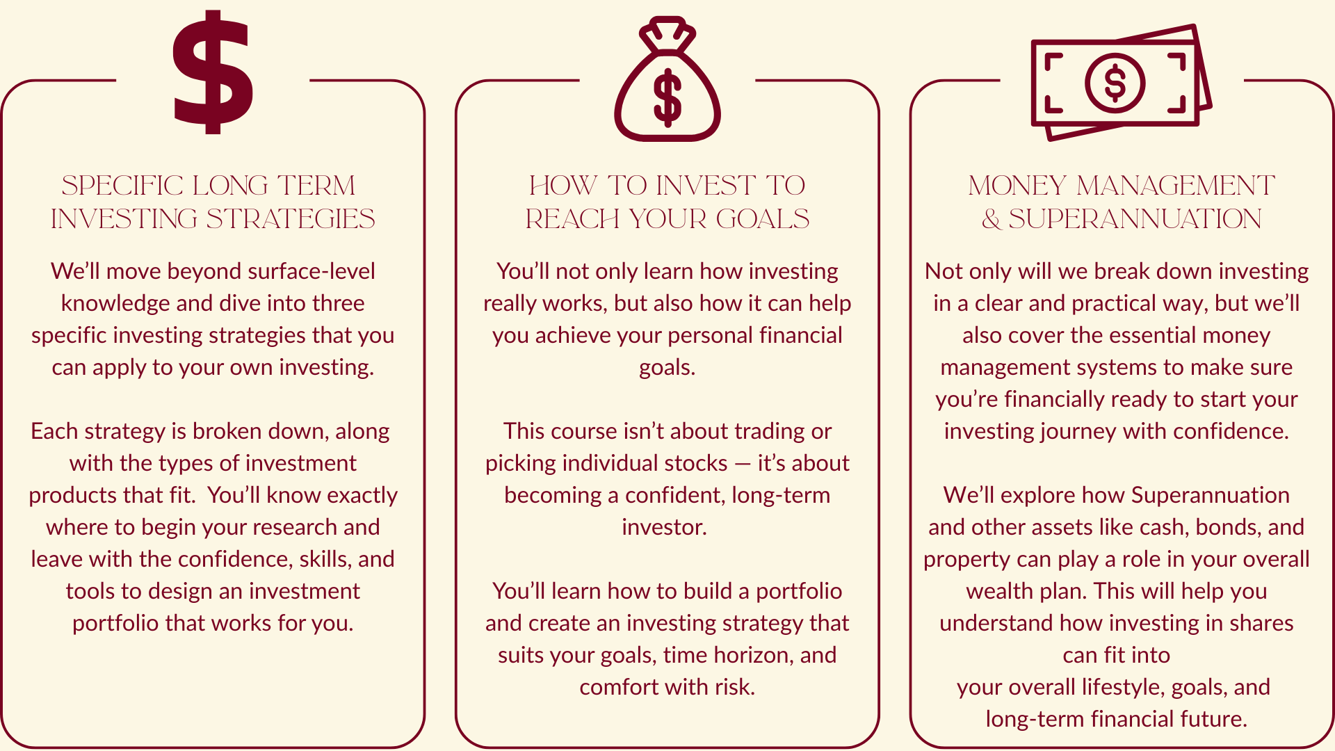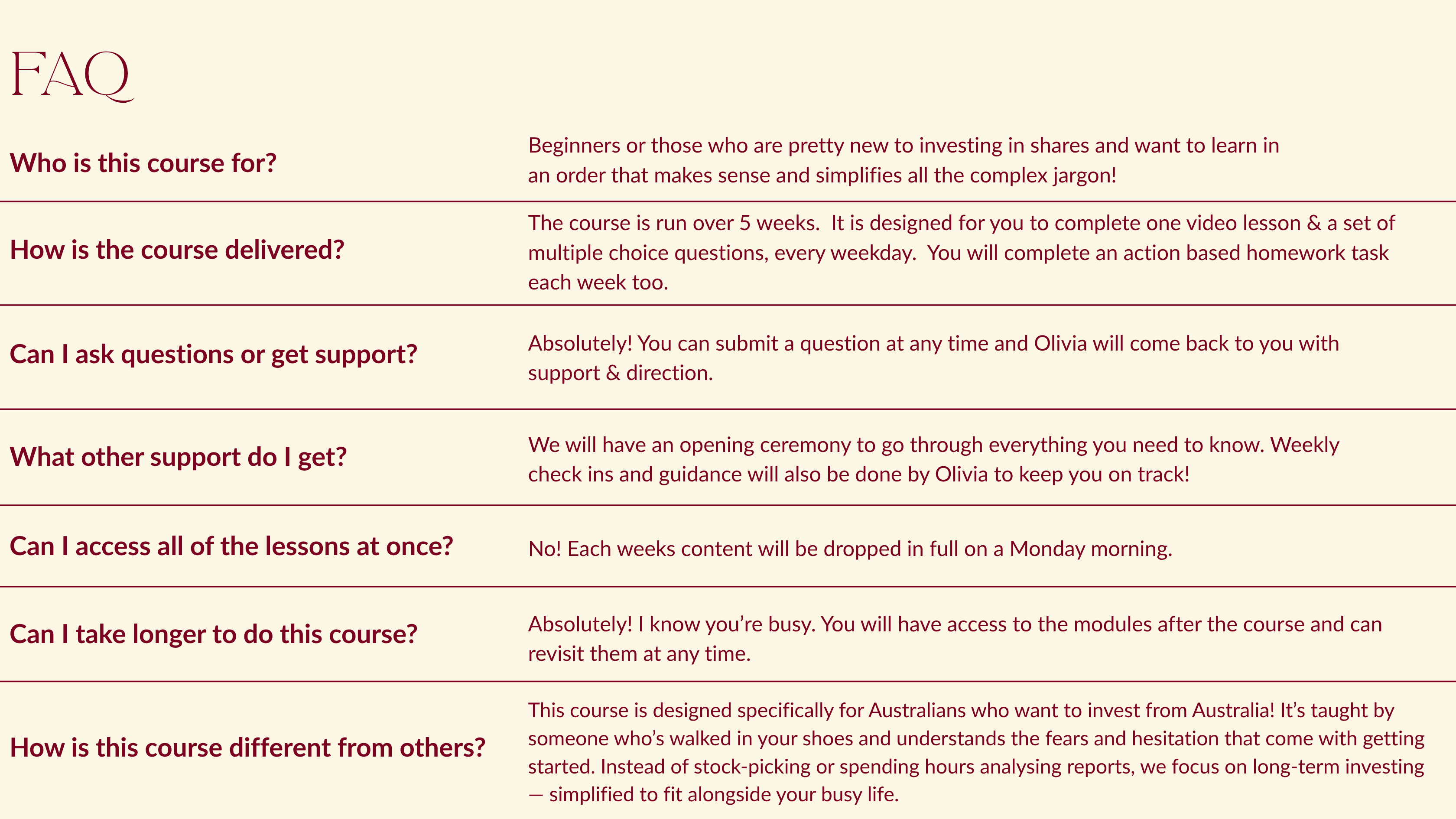 Hello & welcome! I’m Olivia, and I’m so glad you’re here. I’m licensed to give general advice, a qualified teacher, and I’ve been investing for over 10 years — buying my first investment at just 22. Once I discovered the power of investing and how real wealth is built over time, I set myself on the path to financial freedom and learnt how to build a portfolio from scratch. After years of learning from my own mistakes, I’m here to guide you straight to the right knowledge you actually need to start your investing journey. Through Investing School, I’ll guide you step by step to take control of your money, start investing with confidence, and create the future you truly deserve.